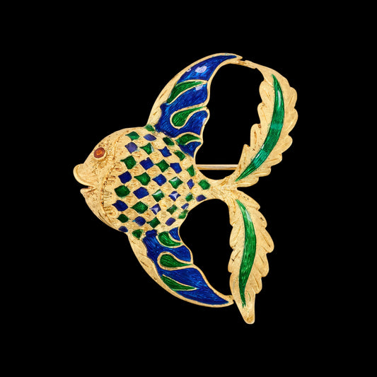 Italian Enamel & Gold Fish Brooch