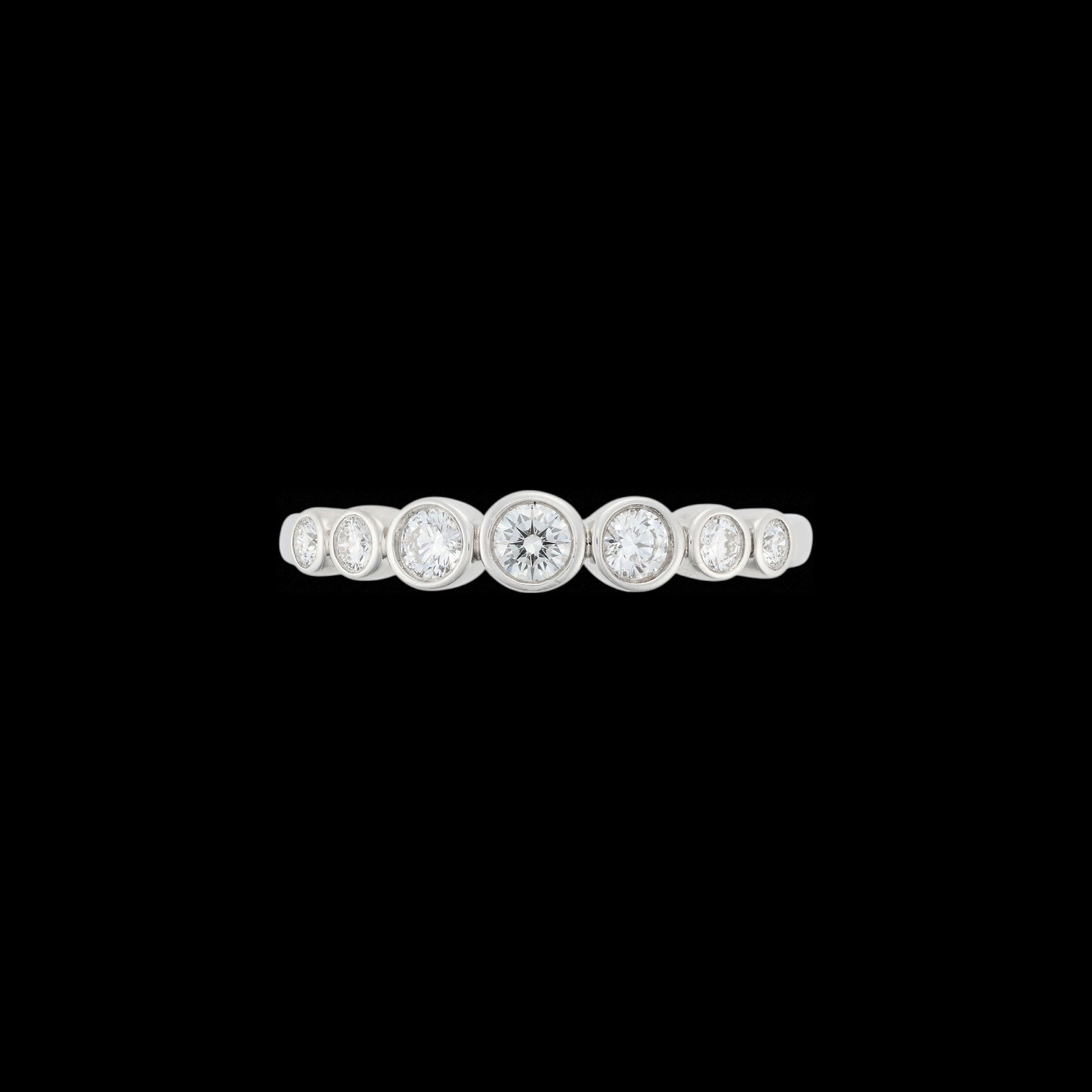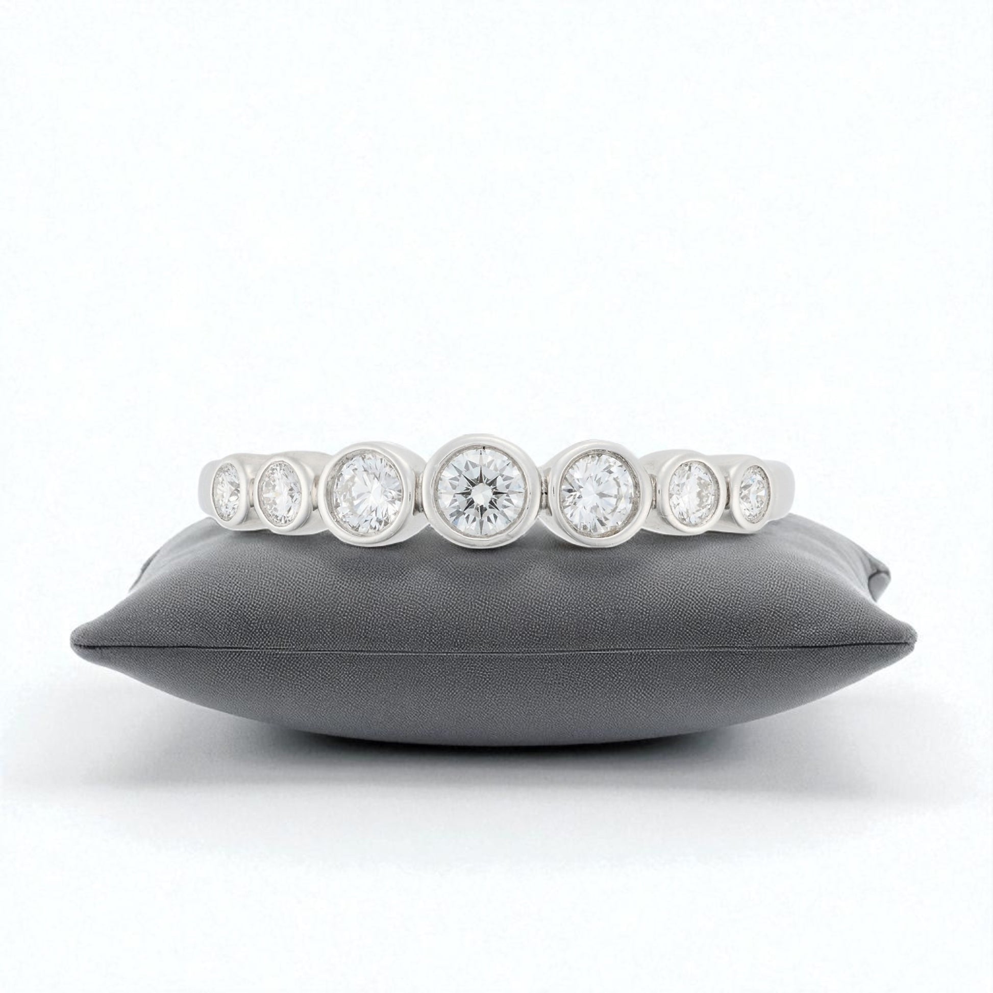 Crafted in luxurious platinum, this exquisite Tiffany & Co. ring showcases seven round brilliant diamonds with a combined weight of approximately 0.32 carats. Elegant and refined, it embodies the brand’s signature craftsmanship and understated sophistication. Signed “Tiffany & Co.” and stamped “PT 950,” it is a radiant piece designed for a lifetime of beauty.